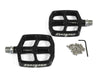 Pedals feature a fully CNC machined platform out of 2014 T6 aluminium with anodised finish. The axle is made of high strength Cr-Mo, heat treated and plated. The platform is slightly concave in shape to give maximum support. Each pedal uses a norglide bush and three cartridge bearings in a fully sealed chamber to give a long smooth life. Replaceable pins per pedal provide excellent traction and grip.